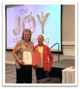At our JCMGA Annual Picnic, as well as the OMGA Joy of Gardening conference, some of our outstanding members were awarded and celebrated for their dedication to our organization. Many thanks to the Nominations Committee for the time and energy they spent nominating candidates and selecting finalists. The nomination committee included the following people: Colet Allen, Anne Ackles, Linda Holder, Kathy Apple, Grace Florjancic, and Linda Jo Millus.